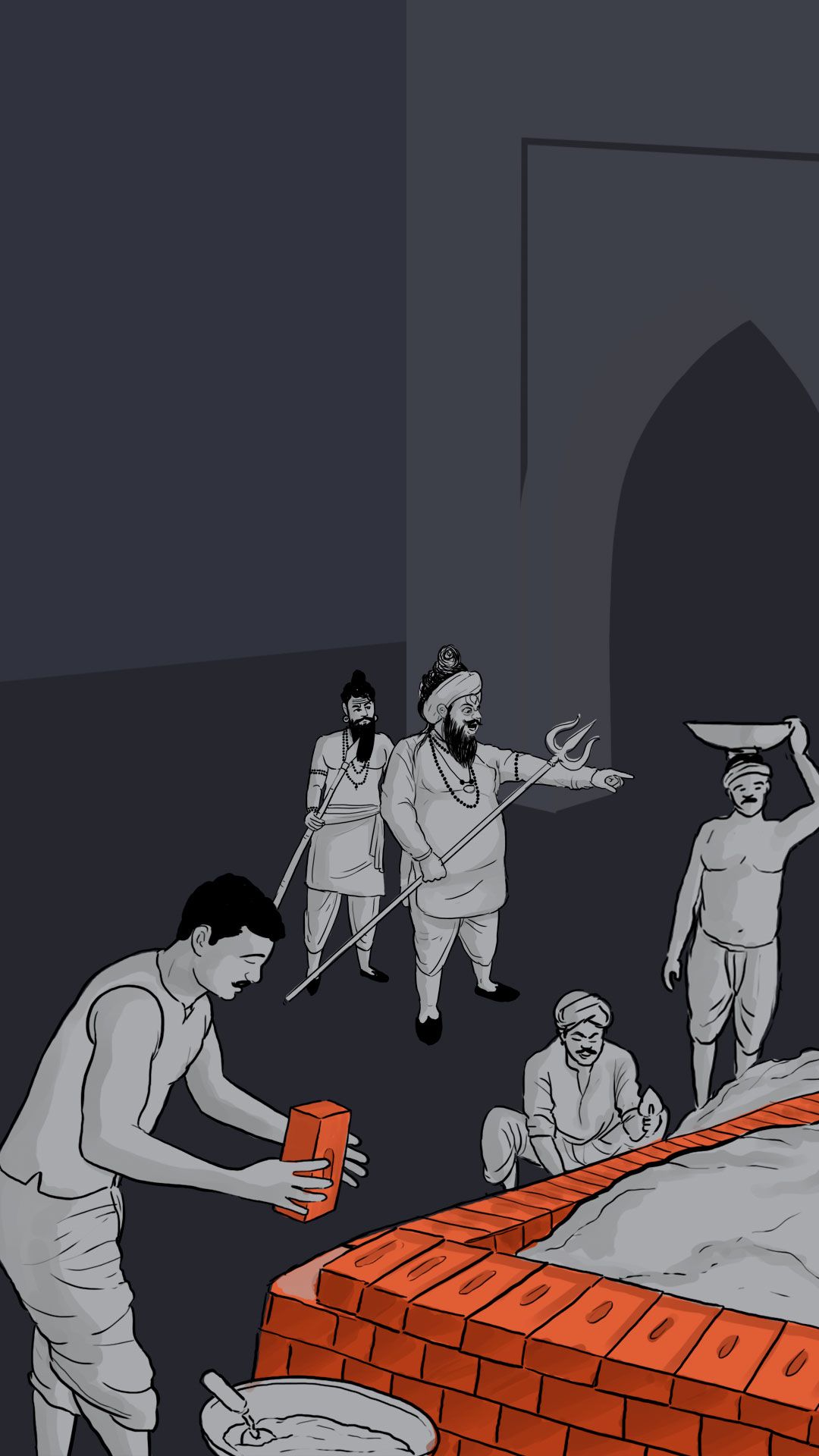 पर्यटनासाठी ताब्यात घेण्यात आलेल्या मशिदींसमोरच्या जागेत मंदिराचं बांधकाम सुरू करावं, अशी संघ परिवाराची मागणी होती. बांधकामासाठी दगड तासून तयार करण्यात आले.